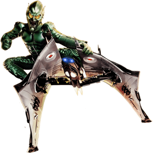 - Зелёный Гоблин (Норман Озборн ). Отец друга Питера Паркера и главный враг Человека-паука. Это злой гений с потрясающим интеллектом, суперсилой и огромным количеством разнообразных гаджетов по типу летающего глайдера и бомб.