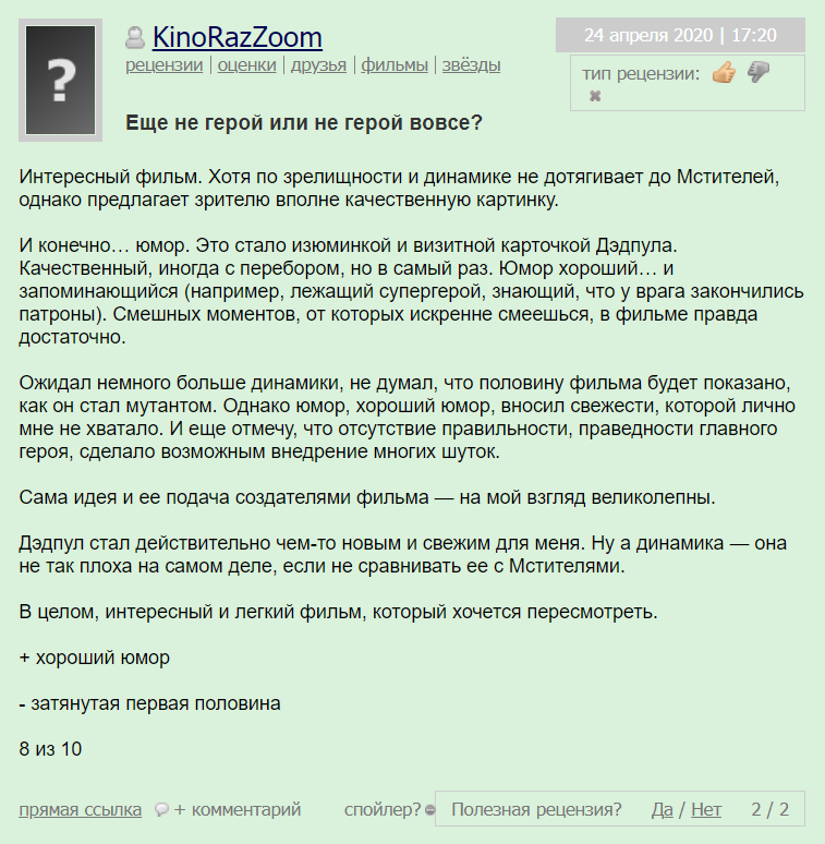 «Дэдпул» — Отзывы и Рецензии Зрителей о Всех Фильмах Кинофраншизы