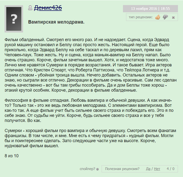 «Сумерки» — Отзывы и Рецензии Зрителей о Всех Фильмах Кинофраншизы